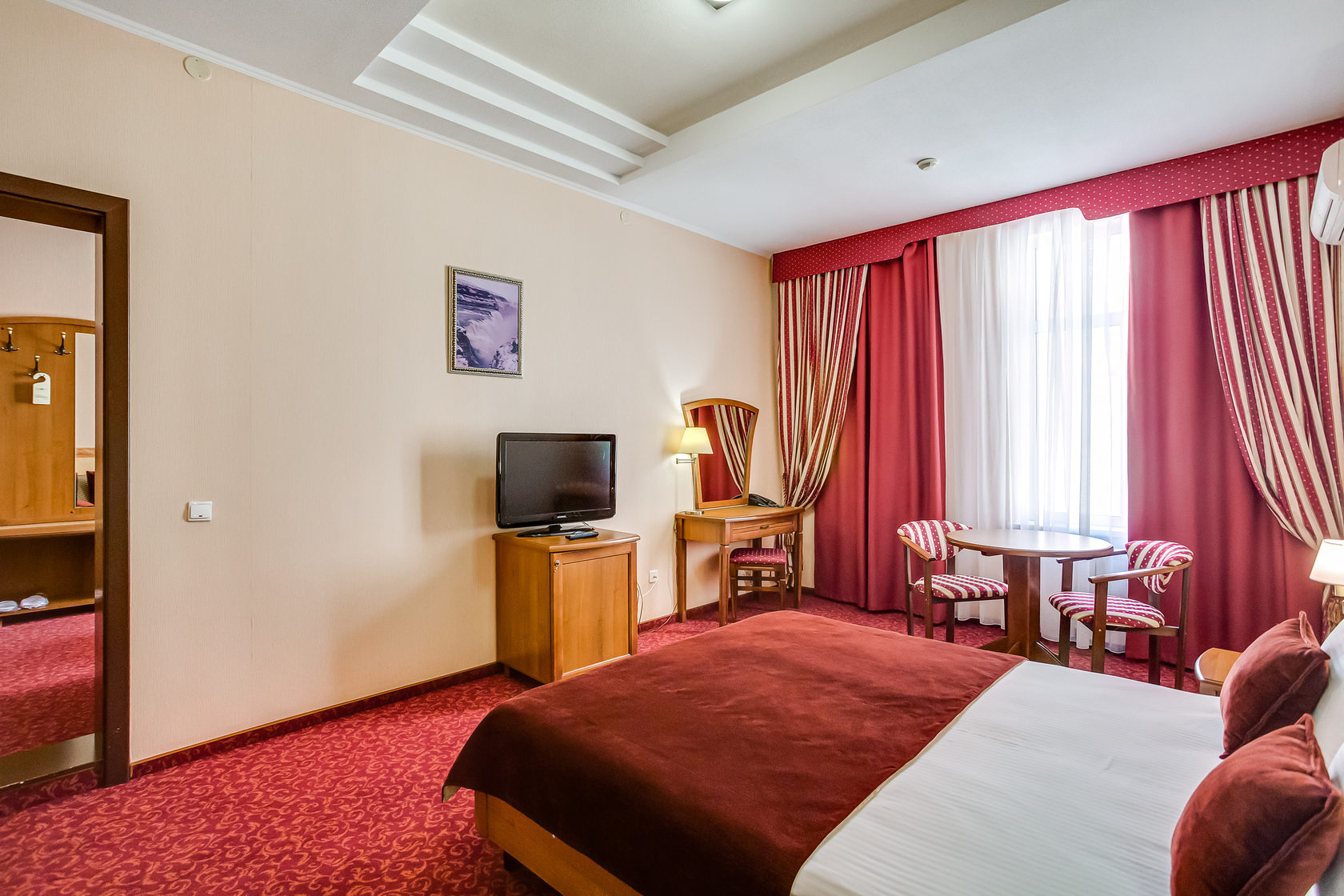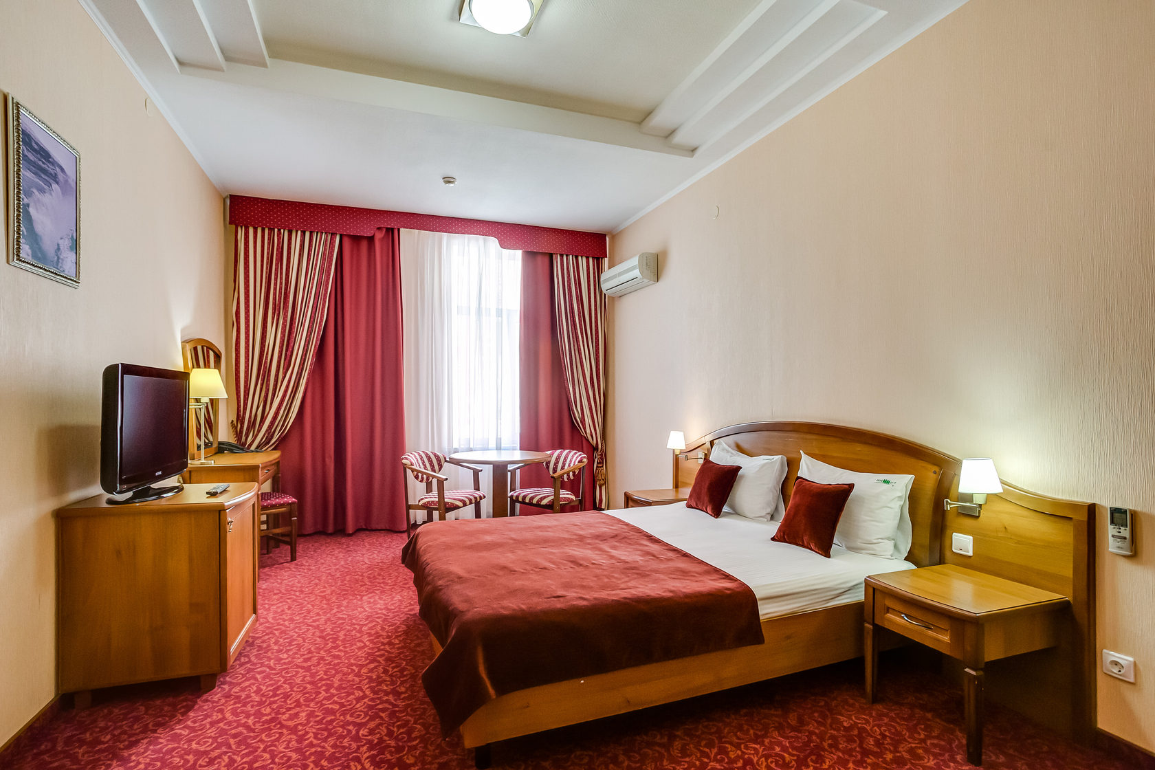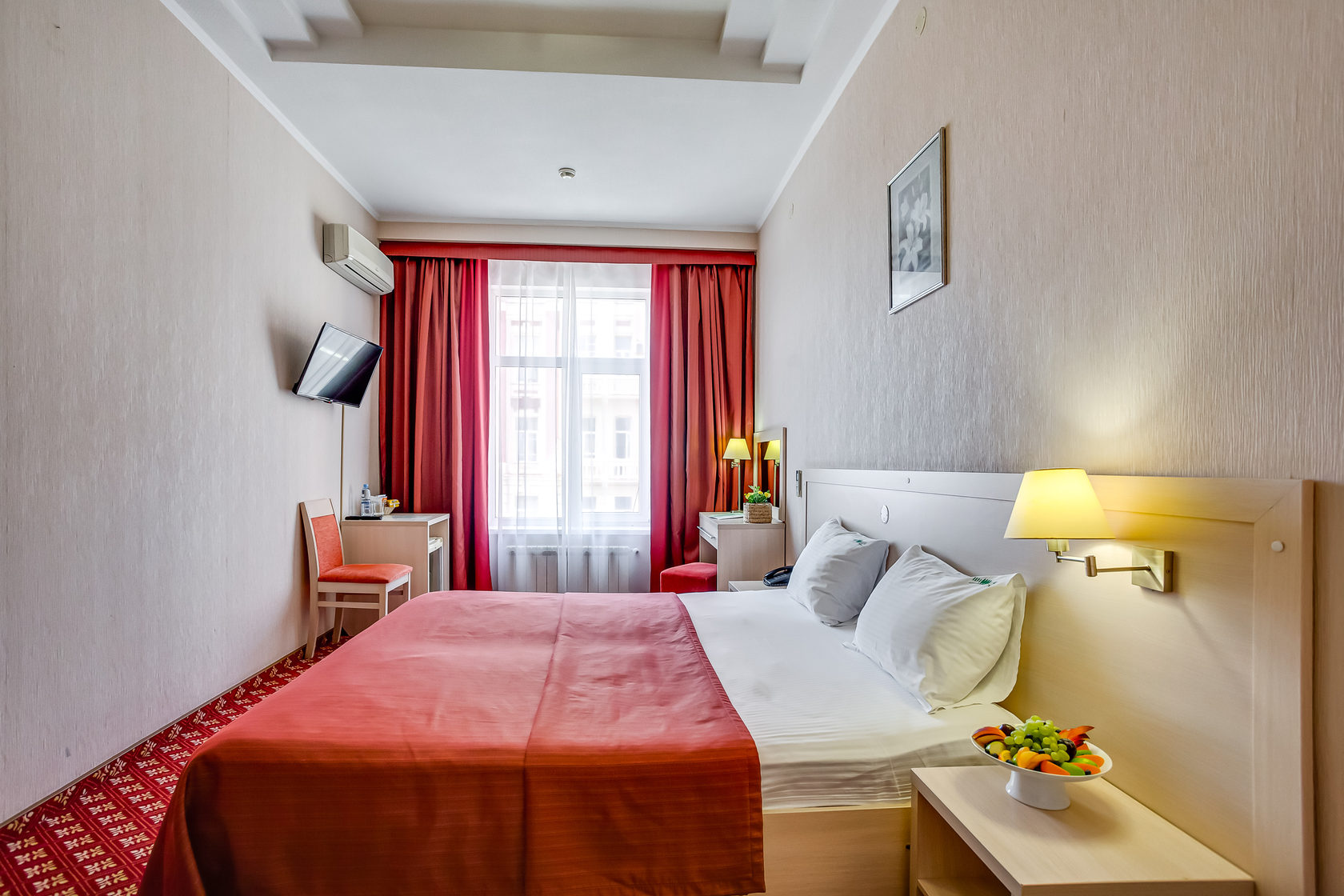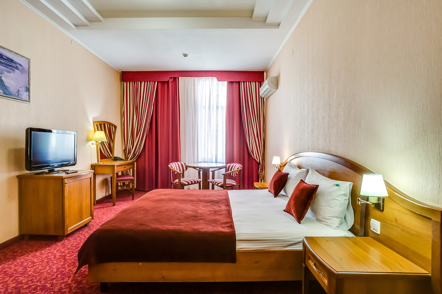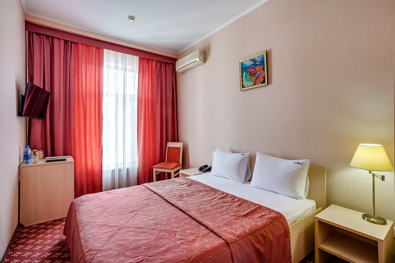Уютный номер с двуспальной кроватью и рабочим местом